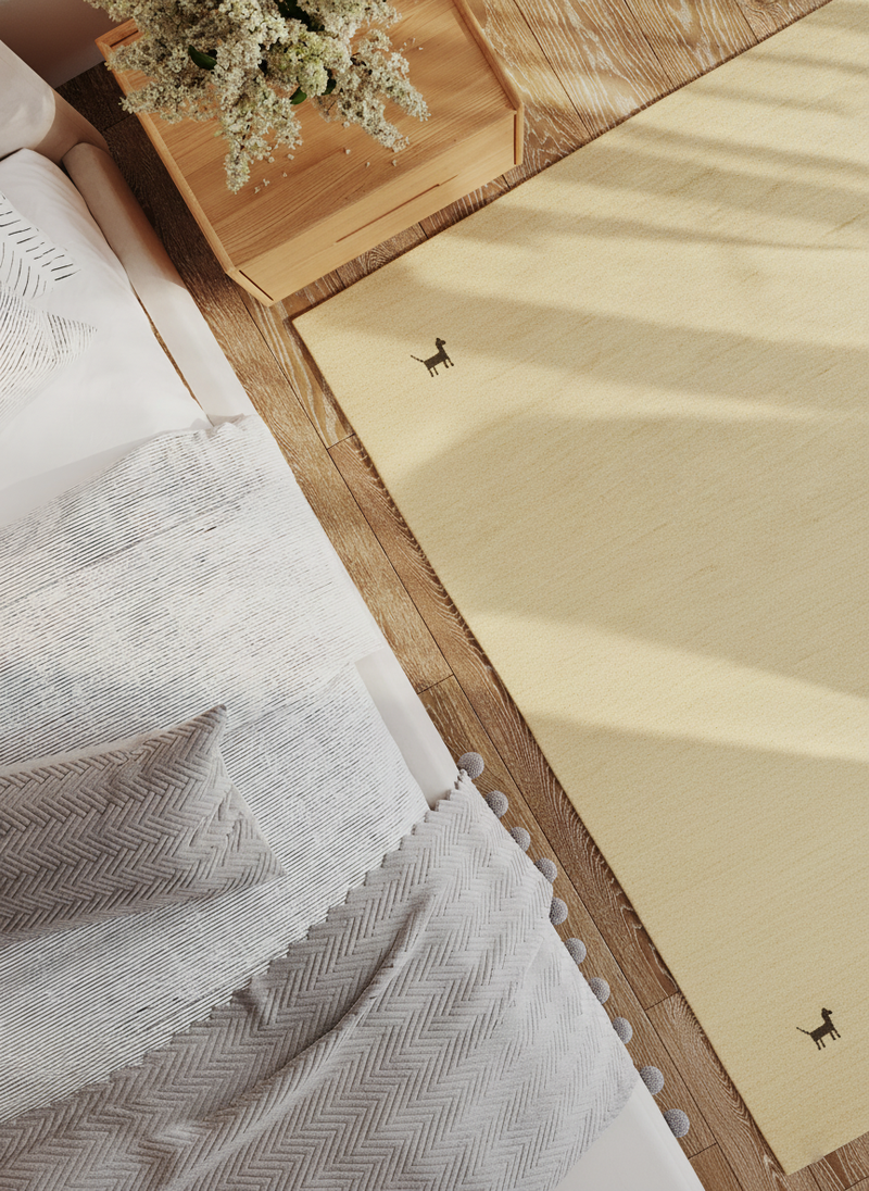 Hand‑spun wool gives the rug a subtly textured surface with a gentle sheen— a mark of true craftsmanship. The material also balances temperature, resists dirt, and helps create a cosy atmosphere.