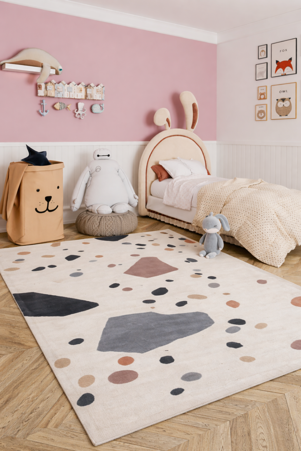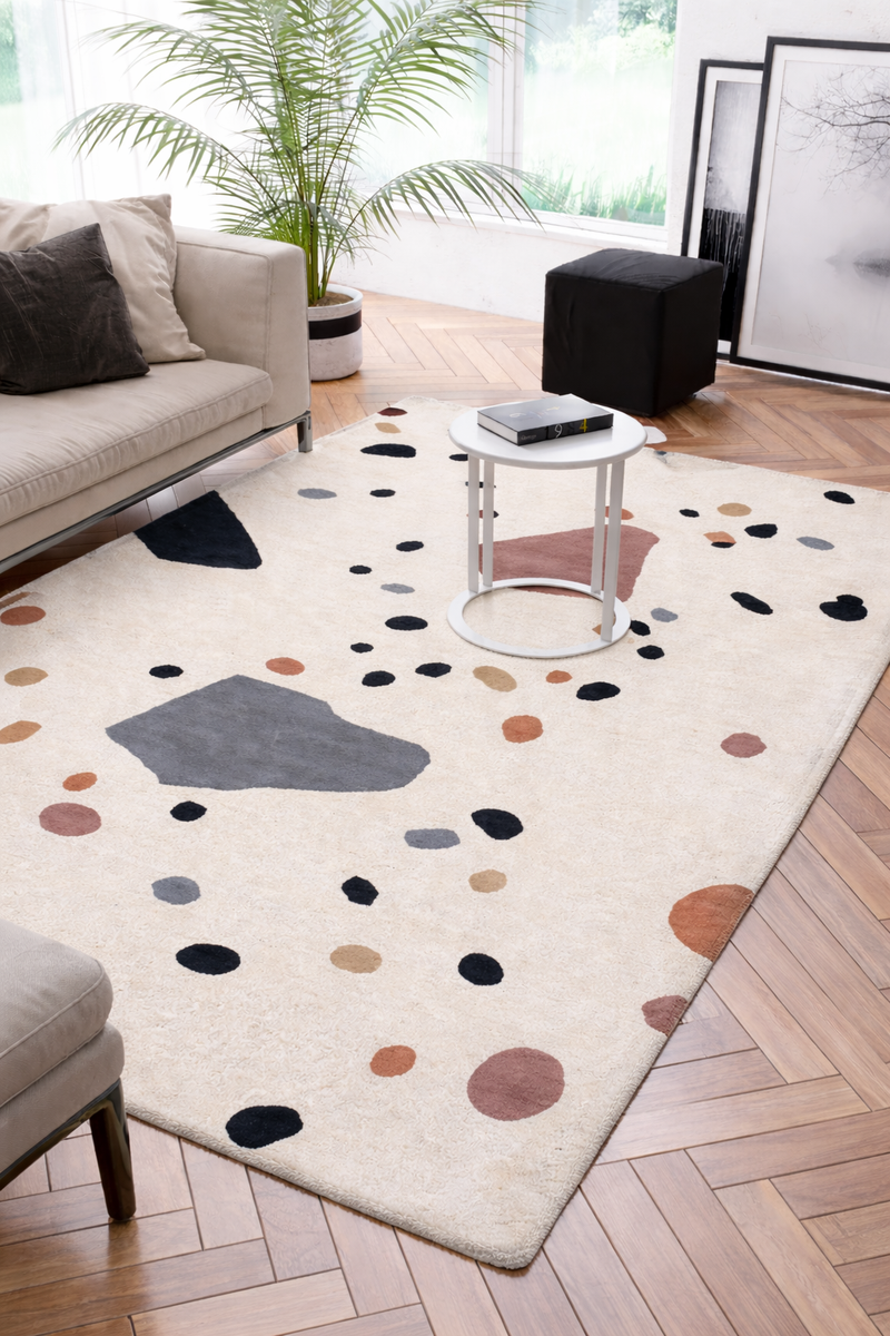 Hand‑spun wool gives the rug a subtly textured surface with a gentle sheen— a mark of true craftsmanship. The material also balances temperature, resists dirt, and helps create a cosy atmosphere.